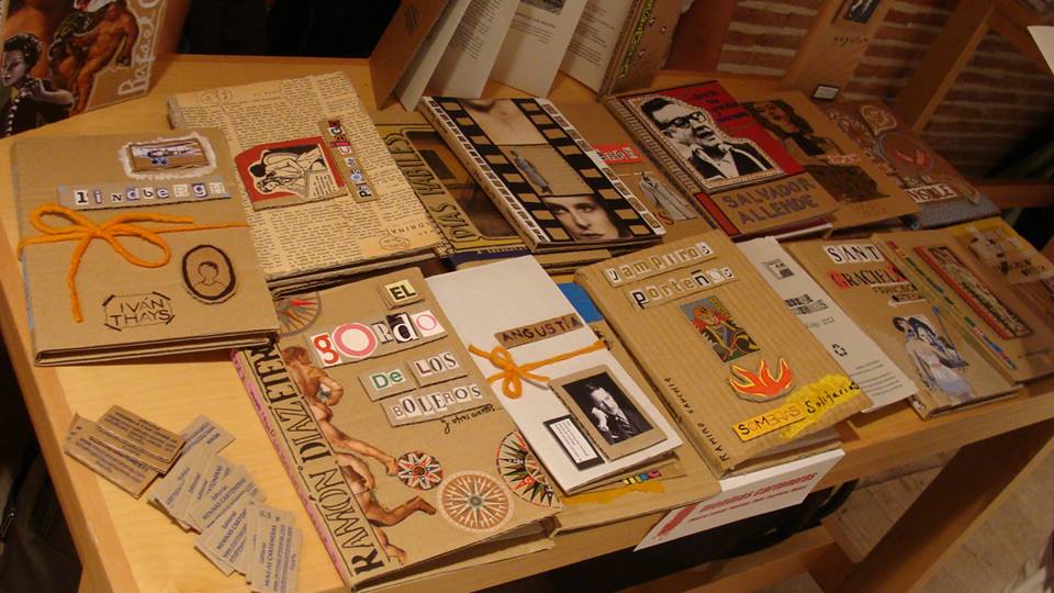 Materiales: Nosotras ponemos el material para hacerlos ( tijeras, pinturas, cola, reglas, punzones, hilo de encuadernar, etc,etc) las copias de los libros (textos a editar). Le pedimos a los asistentes, para que la gente se implique desde antes del taller, que junten cartón usado y algunas revistas viejas, ya que nuestras portadas las hacemos con la técnica del collage.