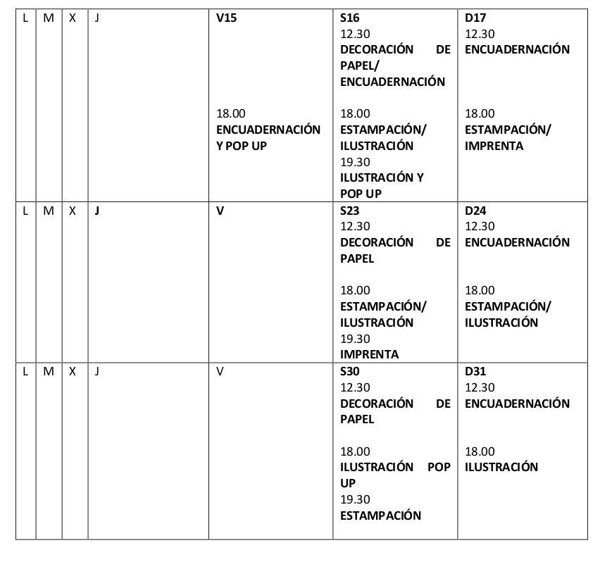 Talleres de encuadernación / ilustración / decoración / imprenta